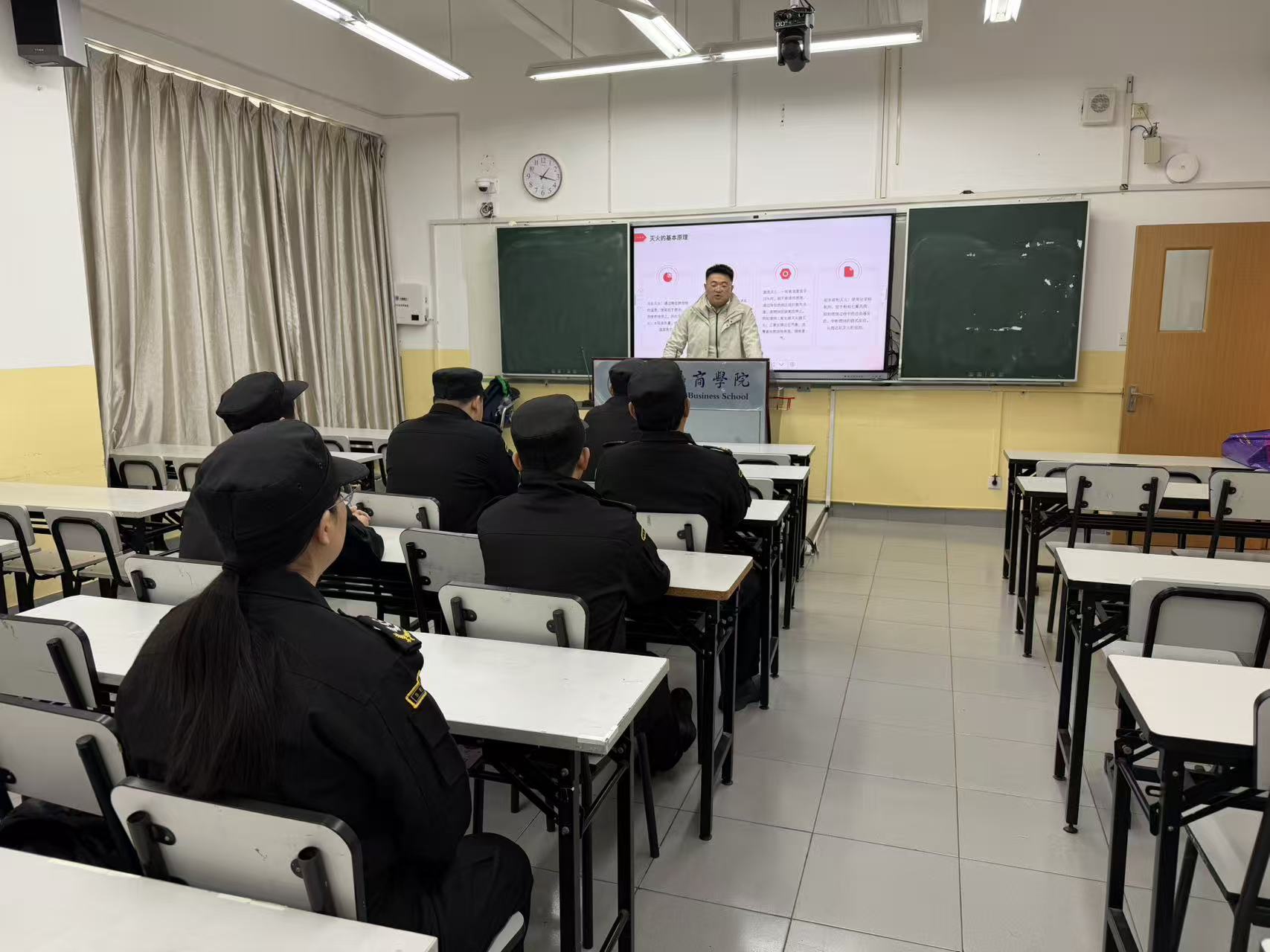 此次培训及演练面向在校加班教职工、住宿学生及第三方员工开展,结合各校区实际情况分时段、分场地有序推进。三校区均按照“理论培训+实操演练”的标准开展活动,先集中组织消防安全理论学习,再在指定区域开展应急疏散演练,确保培训与演练衔接顺畅、落地见效。